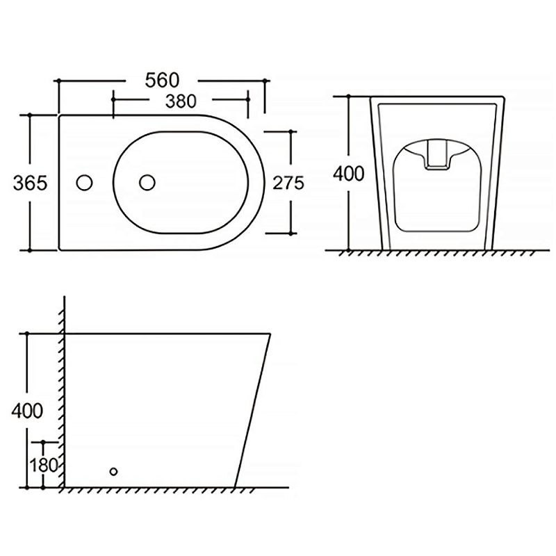 —Биде напольное Azario Тино 365х560х400 санфаянс, белый (AZ-1380F)