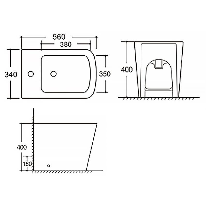 —Биде напольное Azario Кайдо 340х560х400 санфаянс, белый (AZ-1303F)
