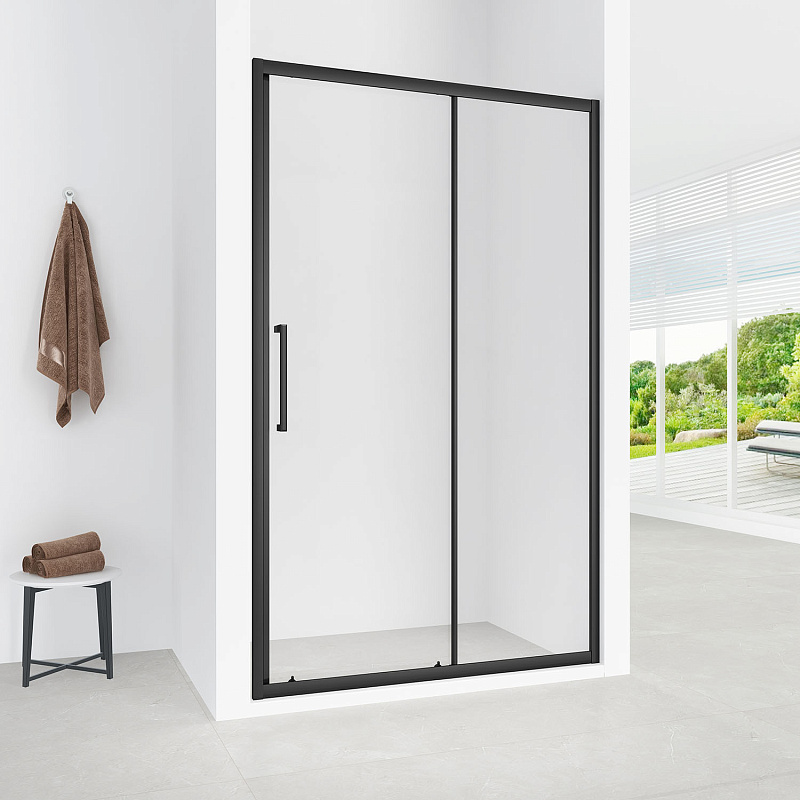 Душевая дверь Loranto 140x190 раздвижная, универсальная, прозрачное стекло 6 мм, профиль черный матовый (CS-AB03B-140)