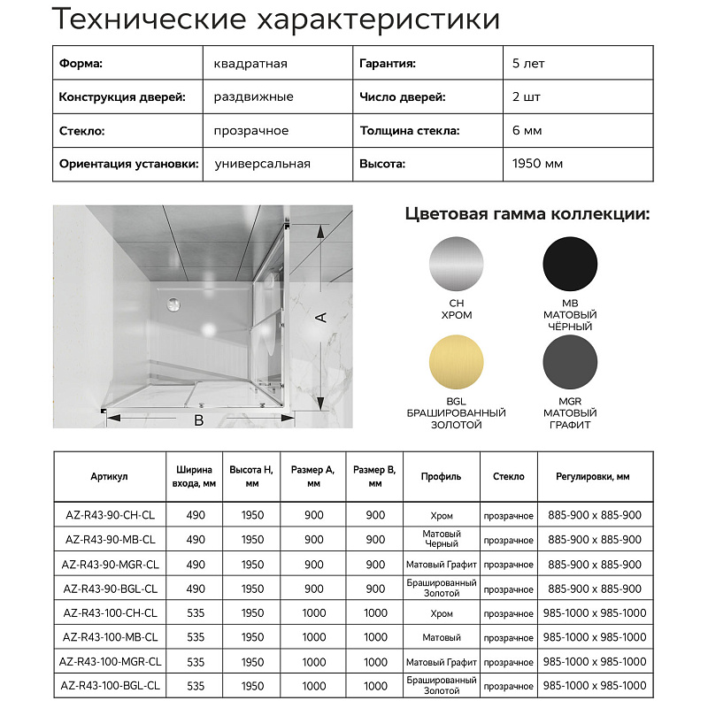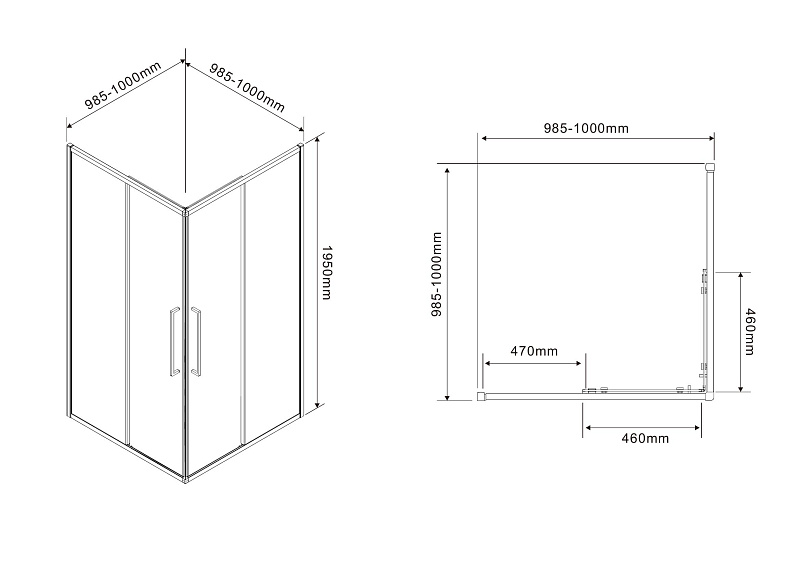 Душевой Уголок Квадратный, ВХОД С УГЛА, с двумя