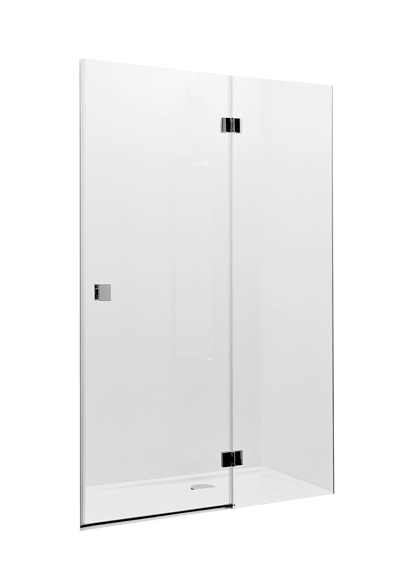 Прозрачное закаленное стекло толщиной 8 мм с гидрофобным покрытием MaxiClean. Хромированные алюминиевые профили, хромированные латунные петли и ручки. Возможен монтаж без душевого поддона.