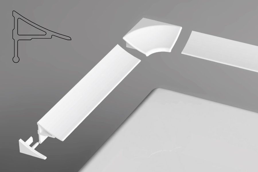 Декоративные планки служат для герметизации и устранения зазоров, возникающих при установке поддонов и ванн. Обеспечивают более простую чистку труднодоступных мест, а также позволяют исправить ситуации, когда во время кладки стены не удалось сохранить правильный угол.