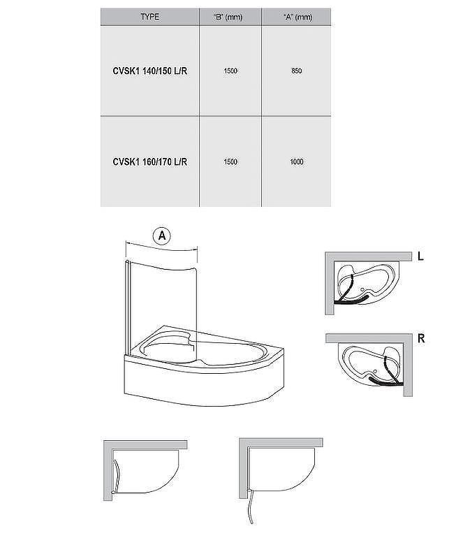 Шторка на ванну Ravak Chrome CVSK1 Rosa 140/150 R 7QRM0C00Y1. Характеристики: