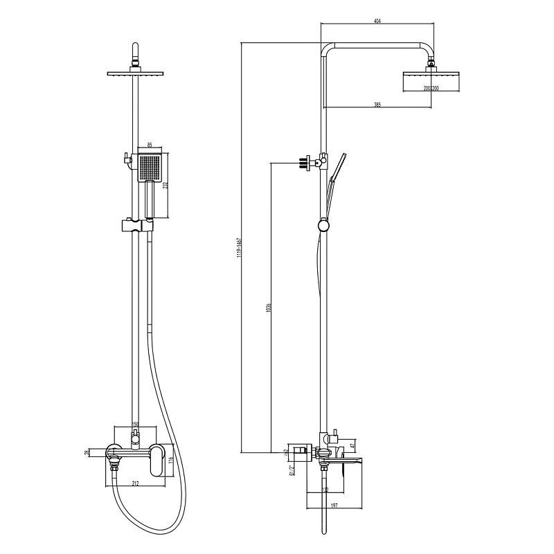 Душевая система Florida Square  с квадратным тропическим душем и квадратной лейкой. Поворотный излив