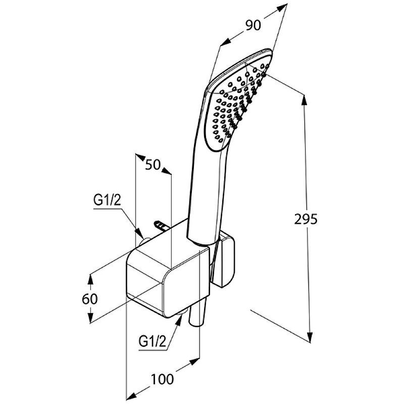 В комплекте поставки: шланг, ручная душевая лейка, держатель, комплект креплений.