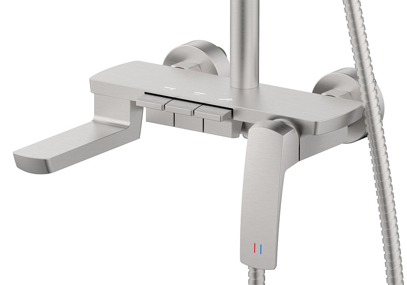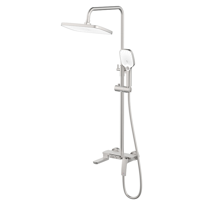 —Душевая система Azario Conda с квадратным тропическим душем, керамический картридж, шланг 150 см, сатин (AZ-K2311BN)