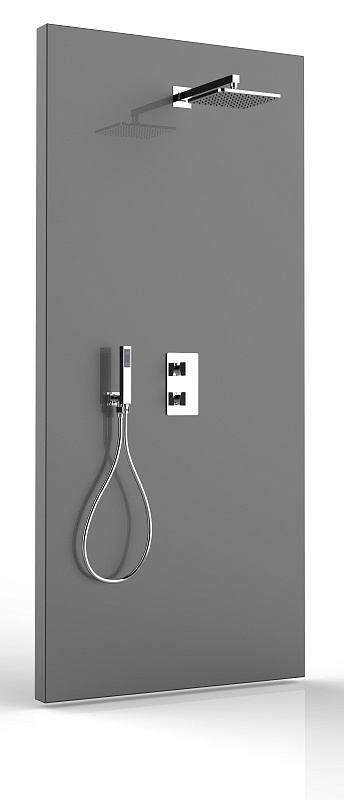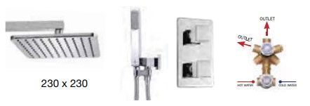 —Душевой комплект Bossini COSMO: смеситель на 2 выхода, верхний душ 230x230 мм, ручной душ CUBE с водорозеткой, шланг 150 см, цвет хром (M00757.030)