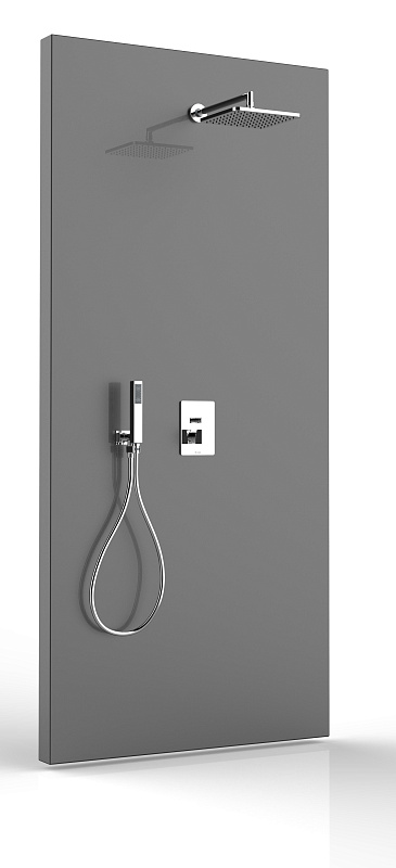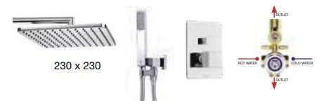 —Душевой комплект Bossini COSMO: смеситель термостат на 2 выхода, верхний душ 230х230 мм, ручной душ CUBE с водорозеткой, шланг 150 см, цвет хром (M00754.030)