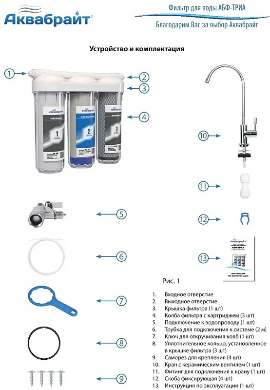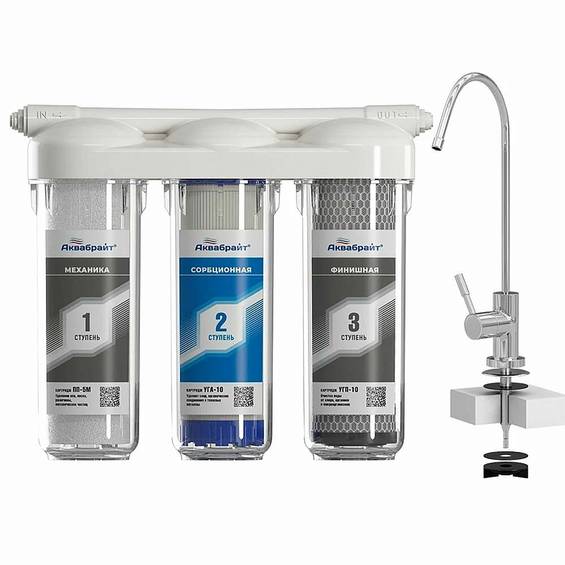АБФ-ТРИА - СТАНДАРТ, ТРЕХСТУПЕНЧАТАЯ система очистки воды под КУХОННУЮ МОЙКУ с отдельным краном. ПРЕИМУЩЕСТВА системы: Позрачные корпуса фильтров. МОНОЛИТНЫЙ КОЛЛЕКТОР (Крышка). Типоразмер картриджей SLIMLINE 10