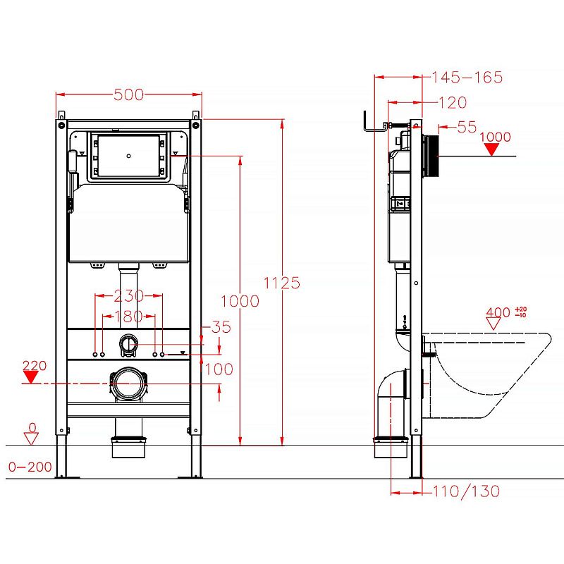 Инсталляция для подвесного унитаза AZARIO NEW сталь, пластик, 2-х режимный смыв 3/6 л. (AZ-501A)