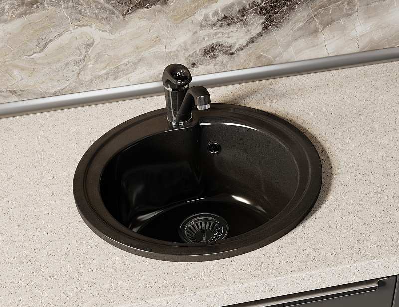 —Кухонная мойка AZARIO Solo 505x505x190 искусственный мрамор, сифон в комплекте, цвет черный (CS00105237)