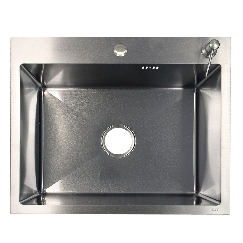 —Кухонная мойка AZARIO NICOLE 600х500х220 нержавеющая сталь, в комплекте сифон, диспенсер,коландер, серебро соты (AZS6050H)