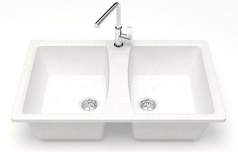 —Кухонная мойка AZARIO Элмас 780х500х190 двойная, искусственный мрамор, цвет белый (CS00078329)