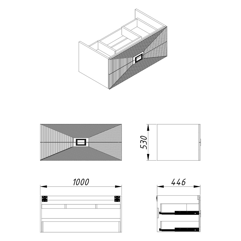 Функциональность: Просторная тумба с двумя вместительными ящиками предоставляет достаточно места для хранения косметики, средств гигиены и других необходимых предметов, помогая поддерживать порядок.