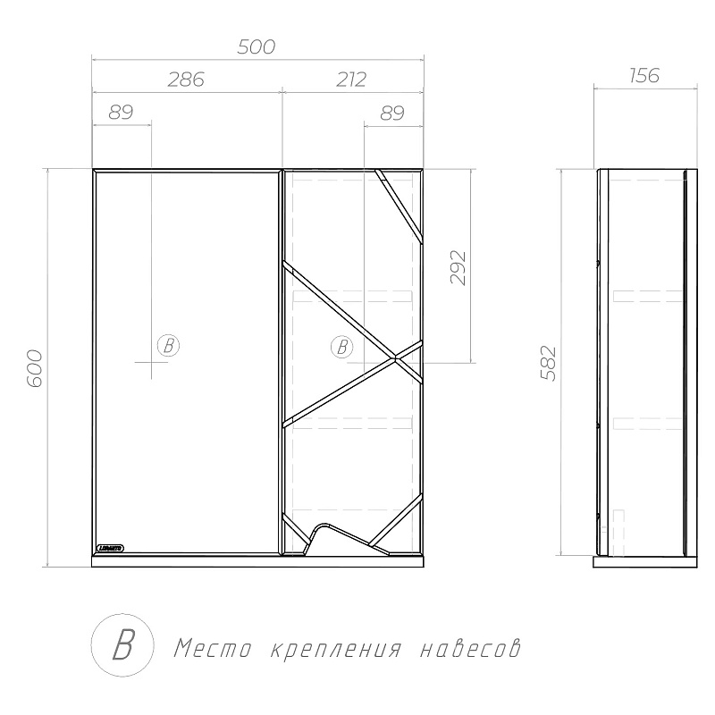—Зеркало-шкаф Loranto Оптимум 50 500х156х600 подвесной, правосторонний, белый (CS00105925)