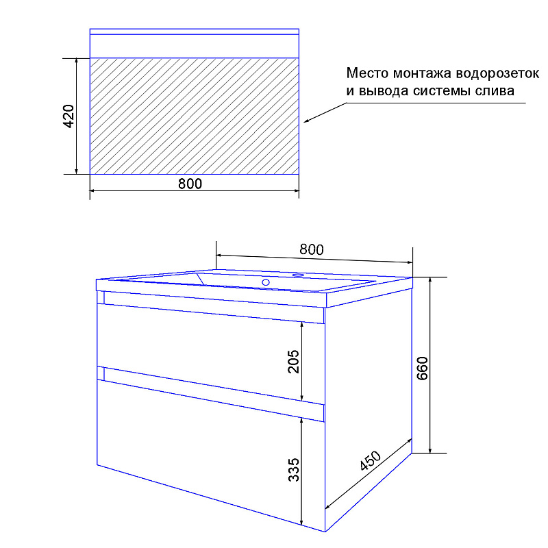 —Комплект тумба Azario Velluto 80 800х450х660 подвесная, с раковиной Slim 80, белый матовый (CS00088603)