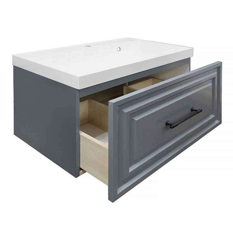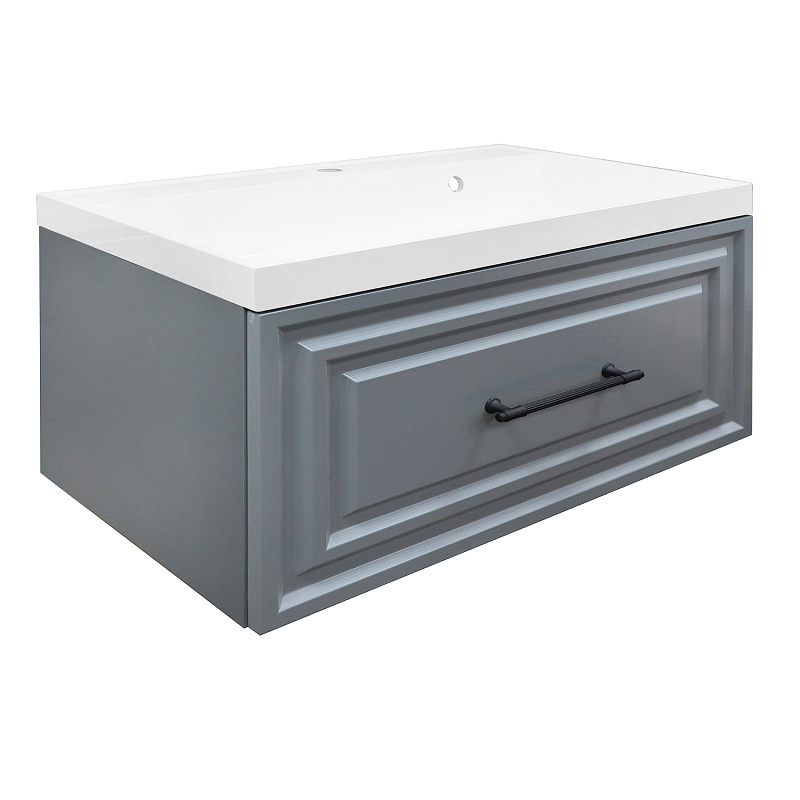 —Комплект Тумба Azario LAURA 80/1 800х450х455 подвесная, с раковиной CLASSIK 80, серый матовый, фурнитура черная (CS00096987)