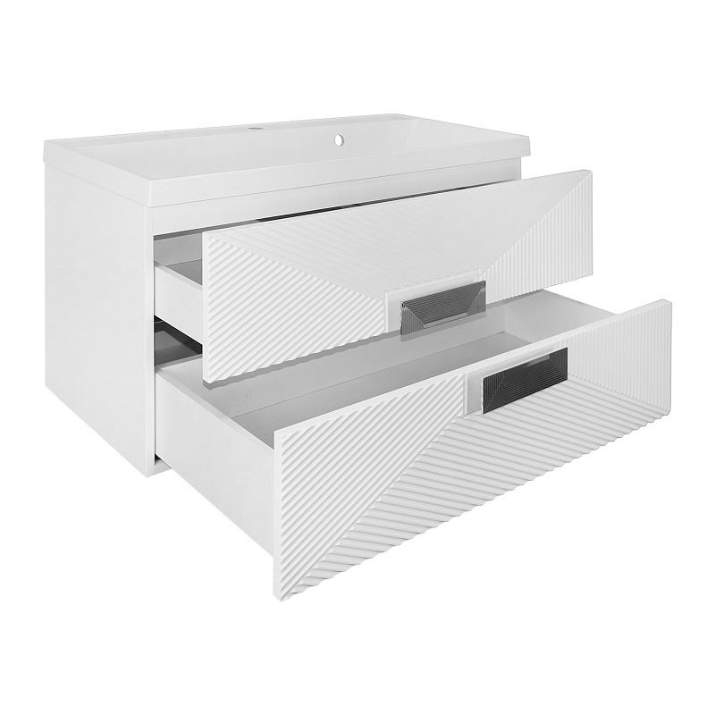 Комплект Azario ZENA Тумба 80/2 800х450х585 подвесная, с раковиной CLASSIK 80, белый глянец, ручка хром (CS00097031)