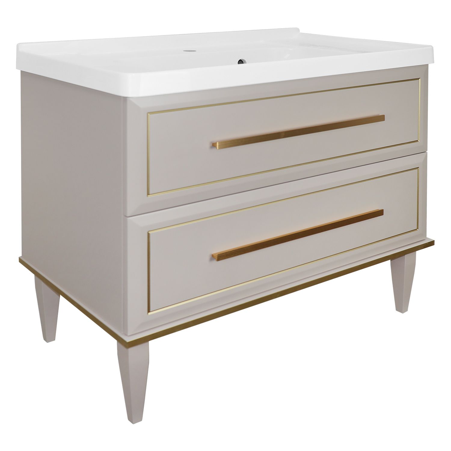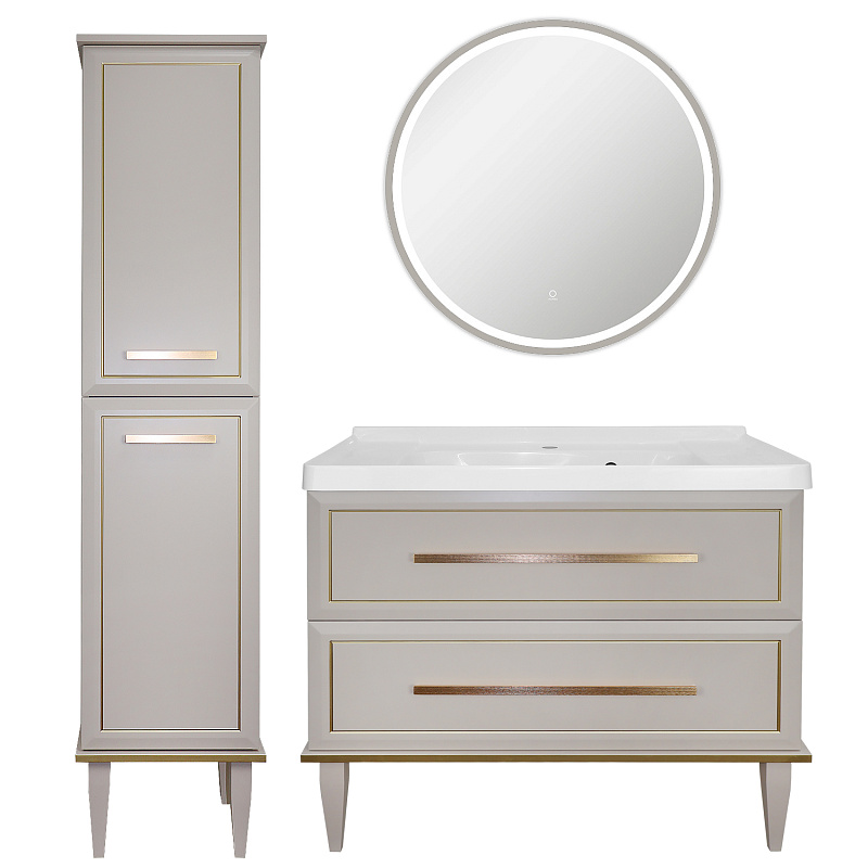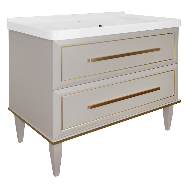 —Комплект Тумба Azario VEGA 90/2Н 900х500х880 напольная, с раковиной VEGA 90, кашемир, ручка золото (CS00098125)