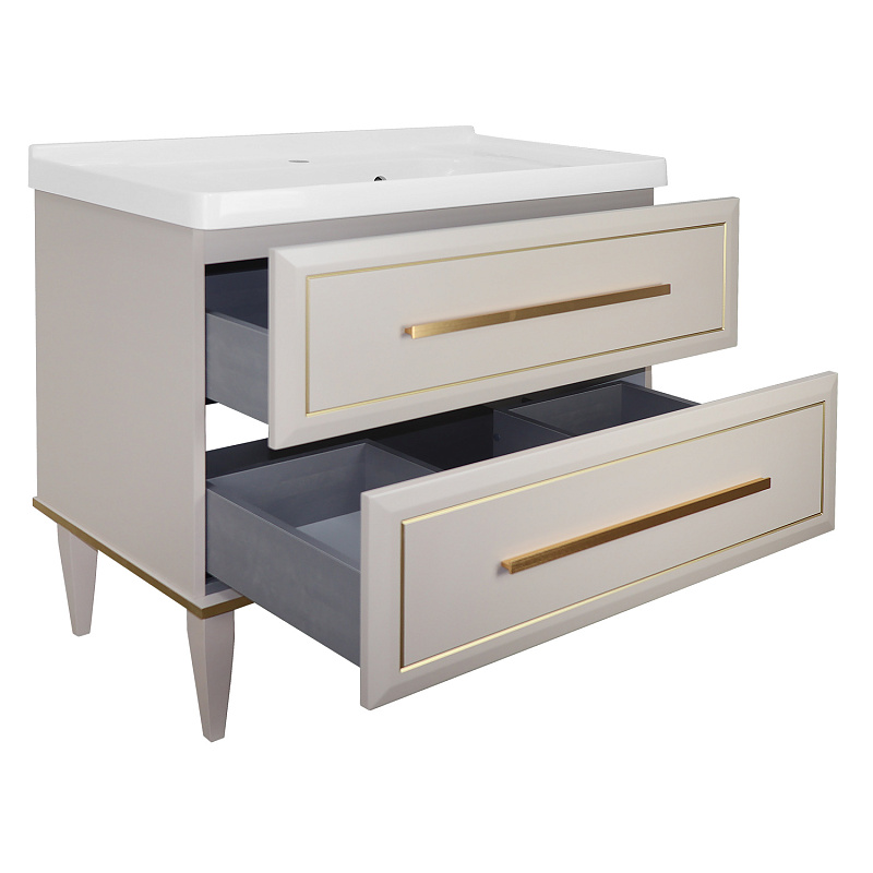 Комплект Тумба Azario VEGA 90/2Н 900х500х880 напольная, с раковиной VEGA 90, кашемир, ручка золото (CS00098125)
