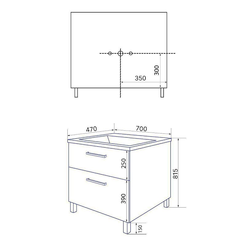 Размеры: Компактные габариты тумбы (700х470х815 мм) позволяют ей идеально вписаться даже в небольшие ванные комнаты, при этом обеспечивая достаточно места для хранения.