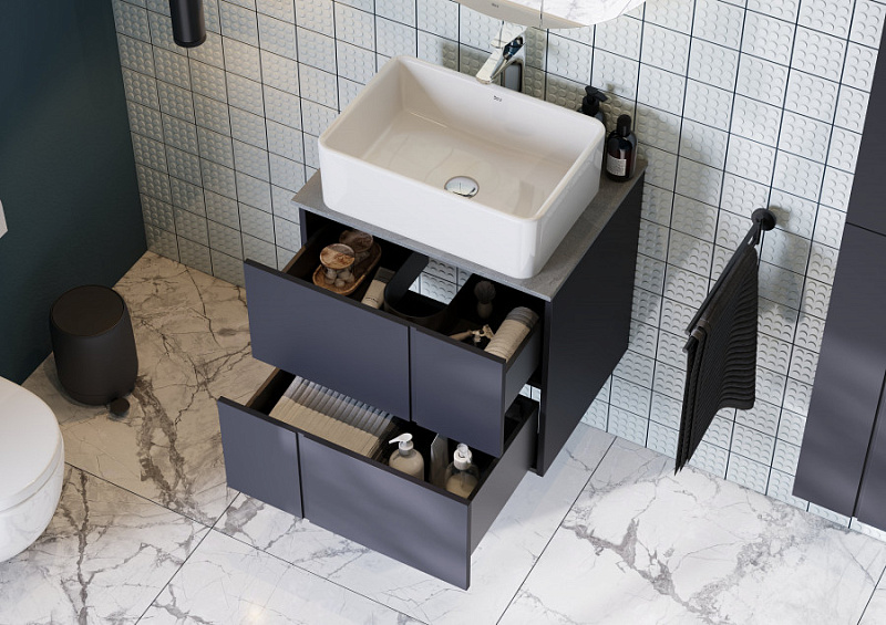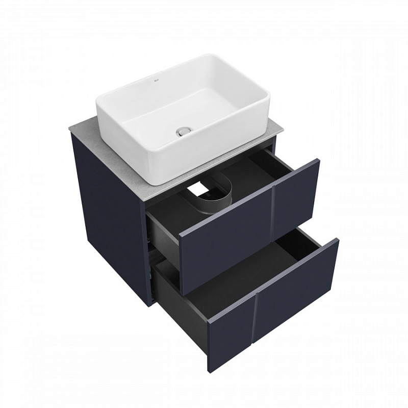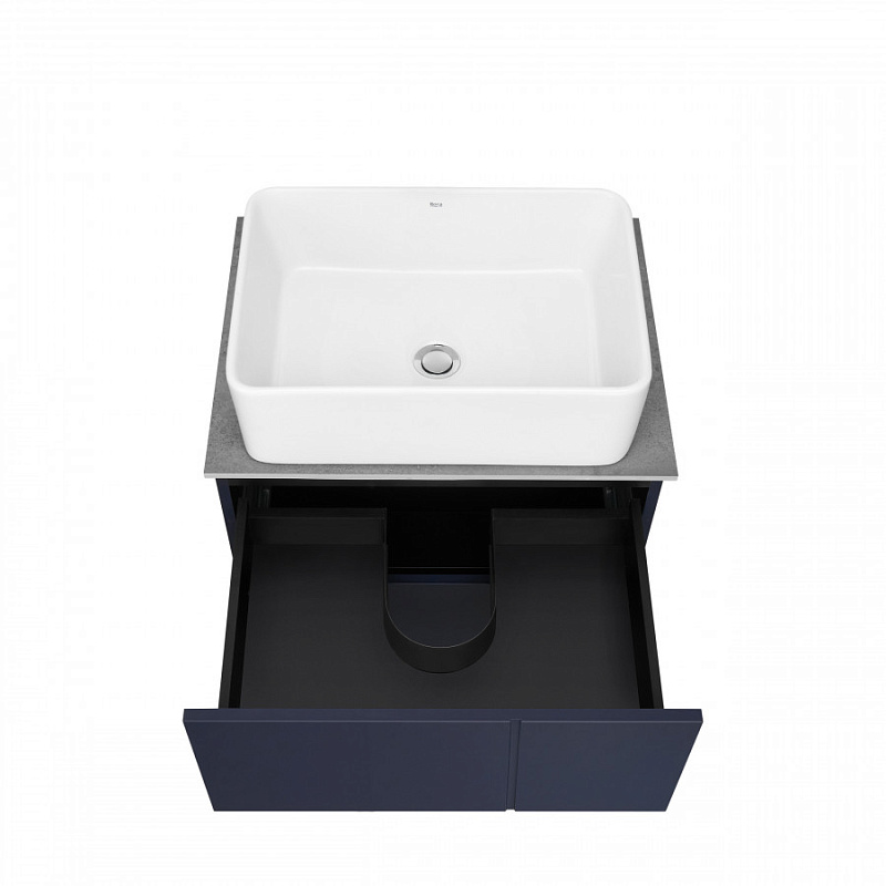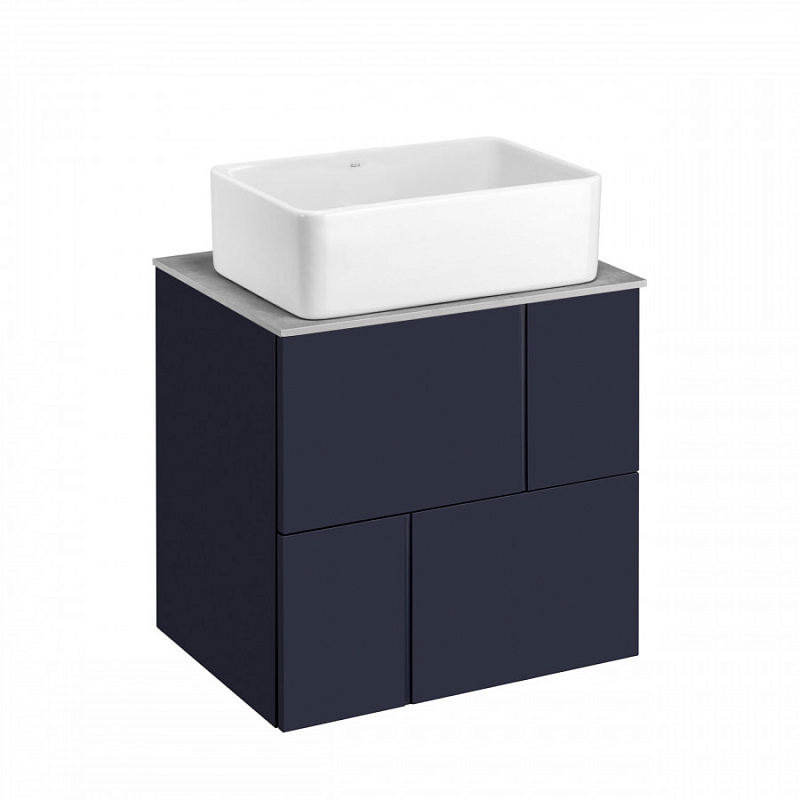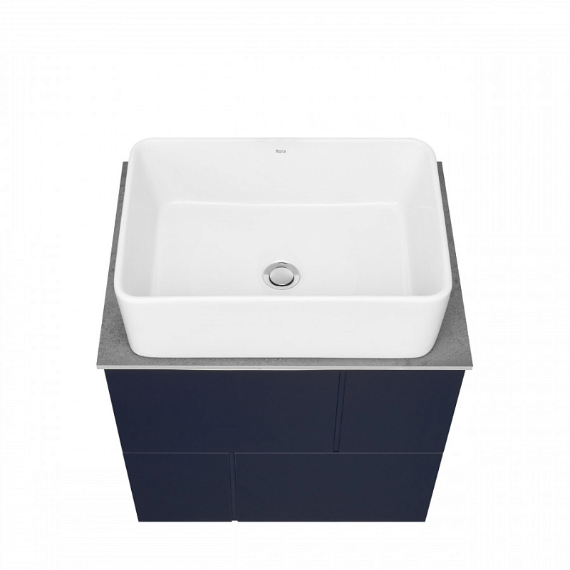 —Комплект: Тумба под раковину Roca Pilar 60 подвесная, 2 ящика + Столешница Roca Pilar 60, керамогранит, серая + раковина накладная MILA, синий (Z.RU93.1.045.1)