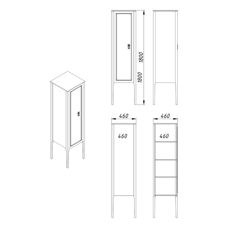 —Пенал напольный Azario RIO 460х1800х460 левосторонний, ручка серебро, серый матовый (CS00096946)