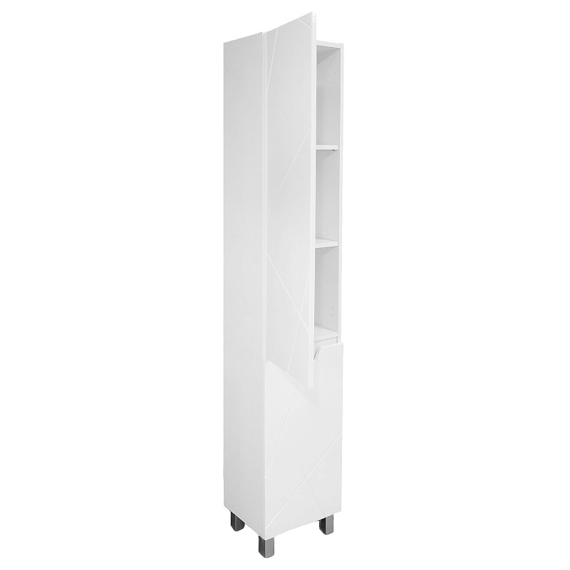Модели одного комплекта (набора) мебели Оптимум выполнены в едином архитектурно-художественном и конструктивно-технологическом решении. Фасады имеют геометрическую фрезеровку с встроенной ручкой. Классический конструктив тумб под раковину с двумя дверцами и полкой позволяет удобно разместить бытовую химию, косметические средства и все необходимое.