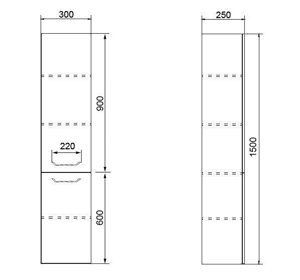 Пенал подвесной Azario Ника 1500х300х250 универсальный, белый глянцевый (CS00080414)