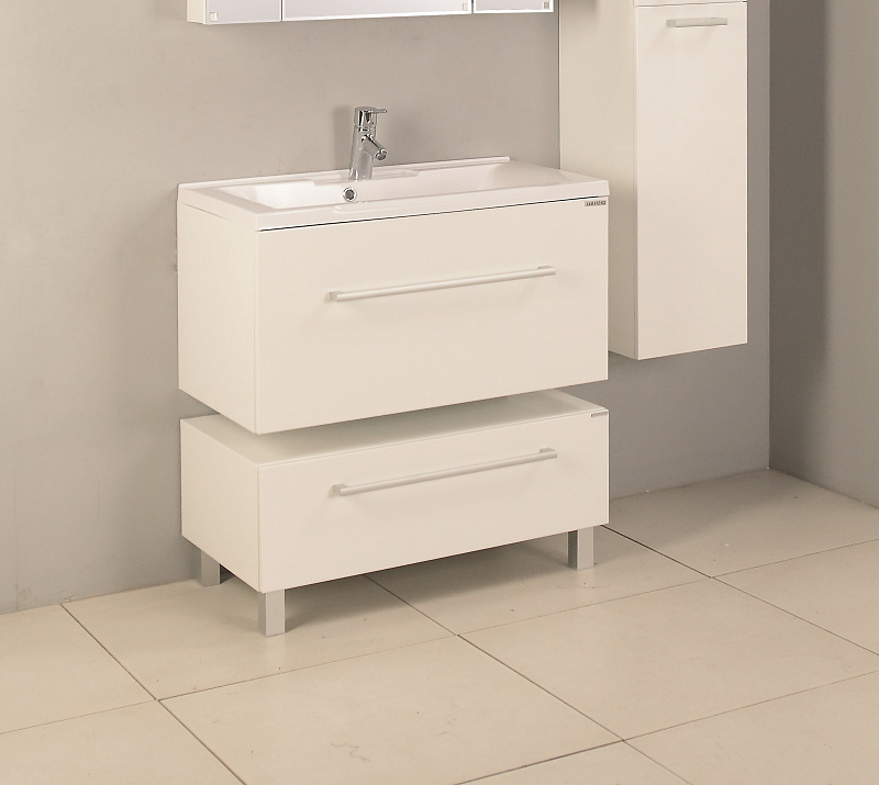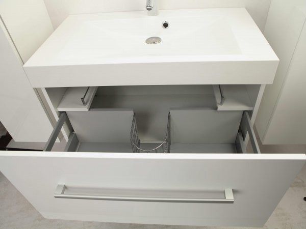 На данной модели тумбы дополнительно предусмотрено нижнее подключение труб водоснабжения и канализации. В комплектацию включен сифон, который специально подобран под параметры тумбы.