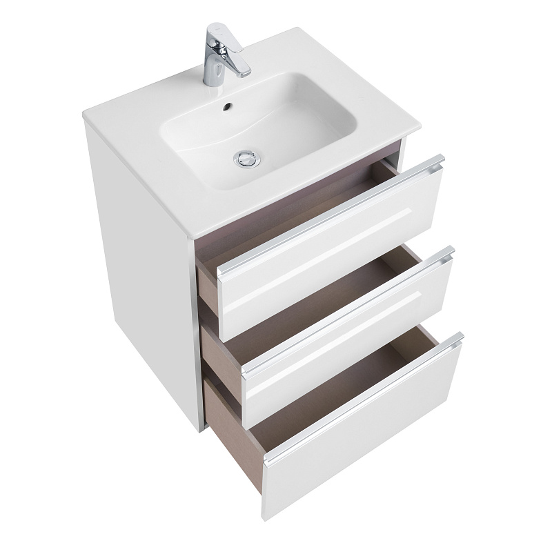 Тумба под раковину Roca THE GAP 600 мм, подвесная, 3 ящика, белый глянец (A857404806)