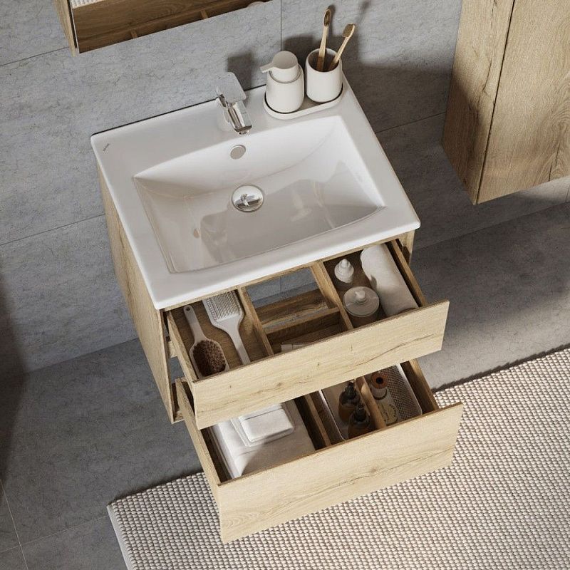 Коллекция мебели Либерти предлагает функциональные и эстетичные решения для ванных комнат. Тумбы с 2 ящиками выполнены в едином цветовом решении, что придает им гармоничный и стильный вид. Корпус, фасады и внутренняя организация тумб изготовлены из влагостойкой ЛДСП, имитирующей текстуру дерева. Боковины тумб обработаны по особой технологии, создающей эффект тонких линий и в то же время сохраняющей надежность конструкции. Ящики открывваются одним нажатием, так как оснащены механизмом Push-to-Open, гарантирующим плавное открывание и закрывание. В тумбах с ящиками размером от 70 см предусмотрена регулируемая система хранения, которая позволяет организовать пространство внутри ящика максимально эффективно. Это обеспечивает комфортное хранение вещей в ванной комнате. Тумбы Либерти с 2 ящиками могут быть дополнены мебельной раковиной “Элина”, которая отличается вместительной чашей и изящными бортами. Также они совместимы с накладными раковинами Roca Mila, Santek Одри и Aquaton Лола.