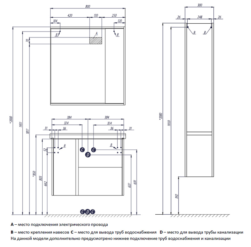 КомплектыПолкиСветильникиСтолешницыТумбы под раковинуШкафыКомплектующие
