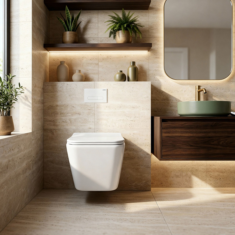 Подвесной унитаз Azario Dezi White — современное решение для стильной и функциональной ванной комнаты. Изготовлен из высококачественного санфаянса белого цвета, модель отличается компактными размерами 355х515х340 мм, что позволяет экономить пространство. Безободковая конструкция обеспечивает легкость ухода и максимальную гигиеничность, предотвращая накопление загрязнений. Система слива «Скрытое Торнадо» гарантирует эффективное и тихое смывание, обеспечивая идеальную чистоту чаши. Унитаз комплектуется быстросъемным сиденьем из дюропласта с функцией «Микролифт», которая обеспечивает плавное и бесшумное опускание крышки. Azario Dezi White — надежный и удобный выбор для современного интерьера ванной комнаты.