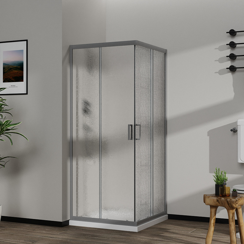 Квадратный и прямоугольный душевой уголок, с двумя раздвижными дверьми, на двойных бесшумных роликах с нержавеющими подшипниками.