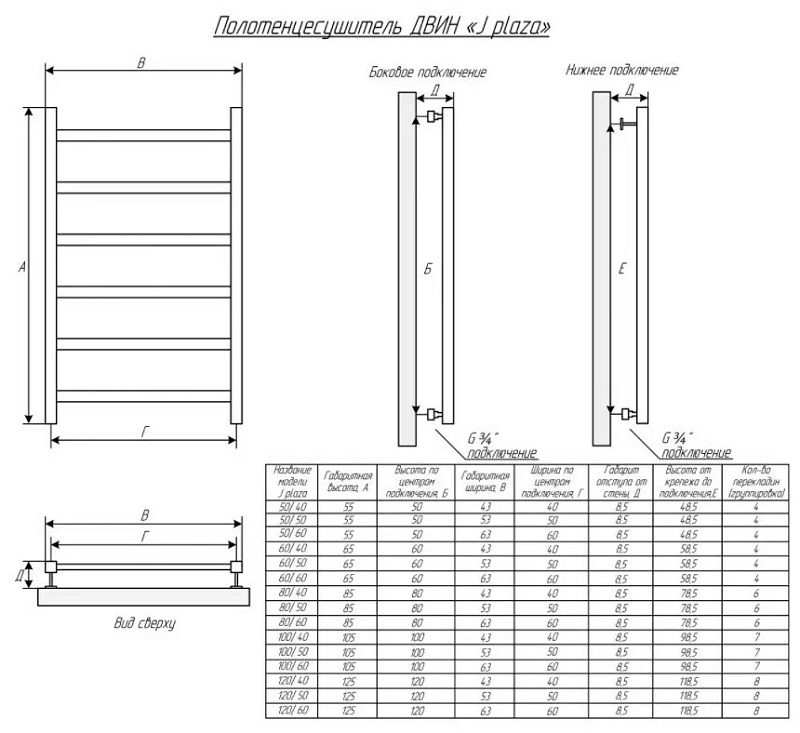 Полотенцесушитель водяной Двин J plaza 50х80, Полированный