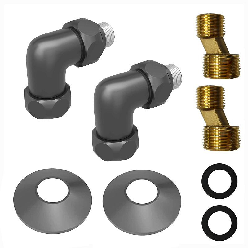 —Угловое соединение для полотенцесушителей Azario уголок со сгоном 3/4"х1/2", графит (AZ83906FW)