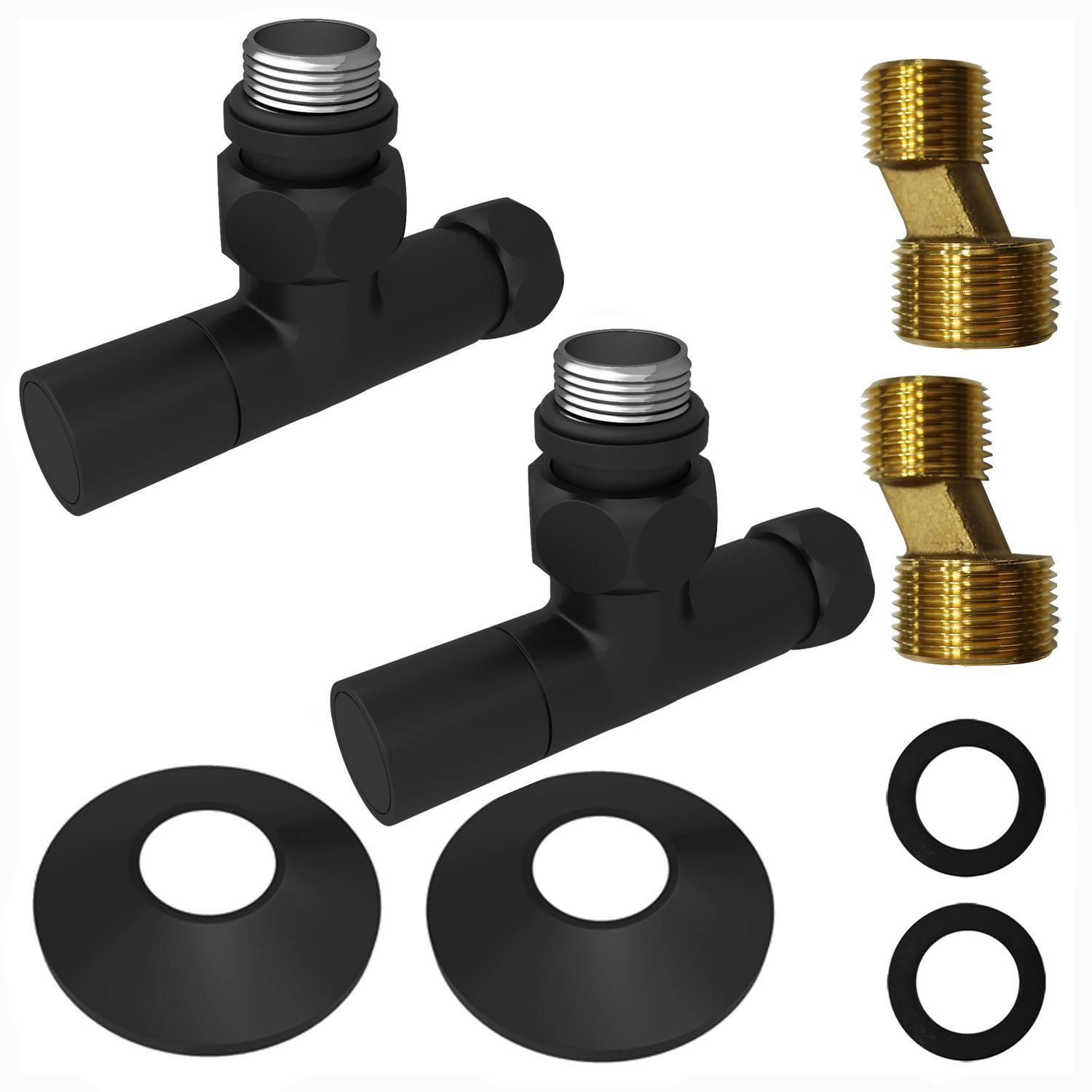 —Соединение угловое с круглым вентилем для полотенцесушителей Azario гайка-штуцер 3/4"х1/2", черный (AZ83855FB)