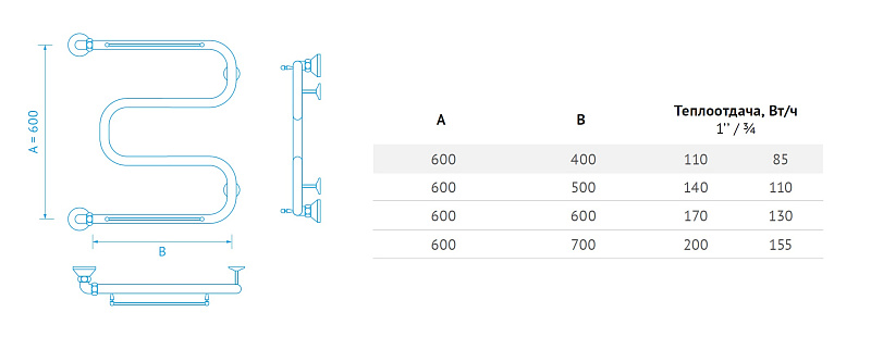 —Полотенцесушитель водяной Маргроид Вид 38 50х60, Хром