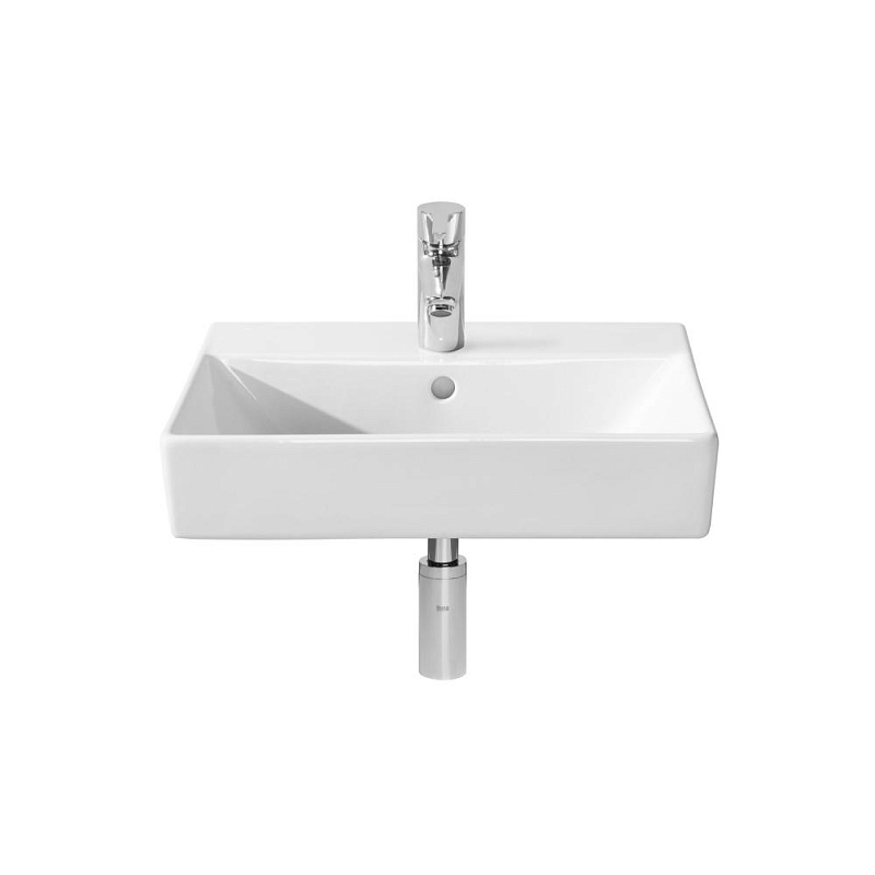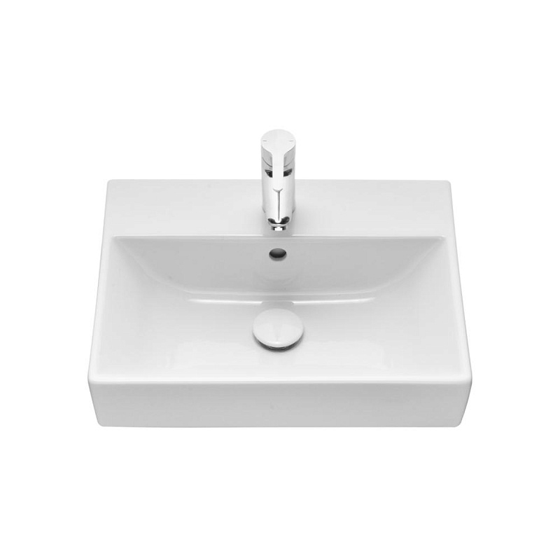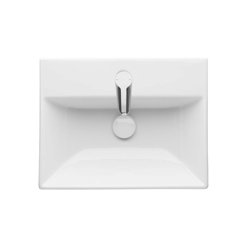 Раковина Roca Oleta прямоугольной формы для установки на тумбу 50 см, с отверстиями для смесителя и перелива.
