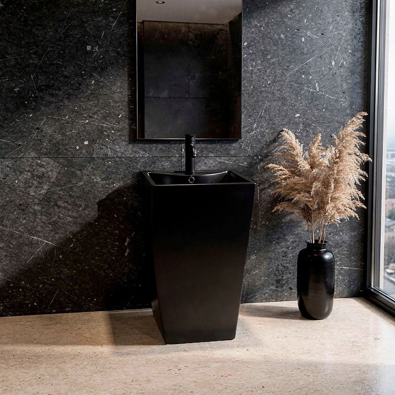 —Раковина напольная Azario Комелла 480х420х855 отдельностоящая прямоугольная, черный матовый (AZ-314MB)