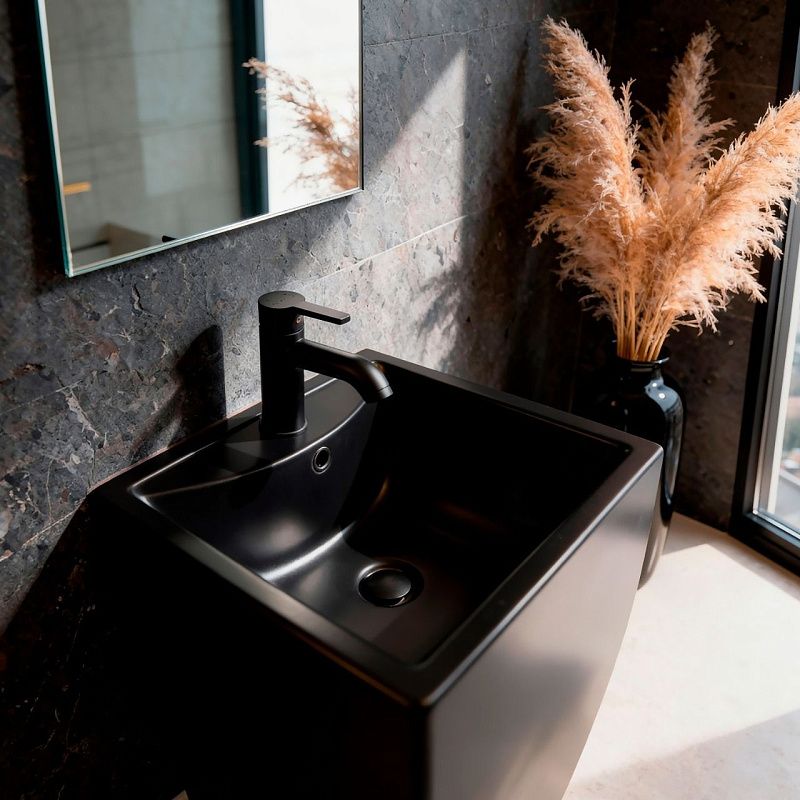 Раковина напольная Azario Комелла 480х420х855 отдельностоящая прямоугольная, черный матовый (AZ-314MB)
