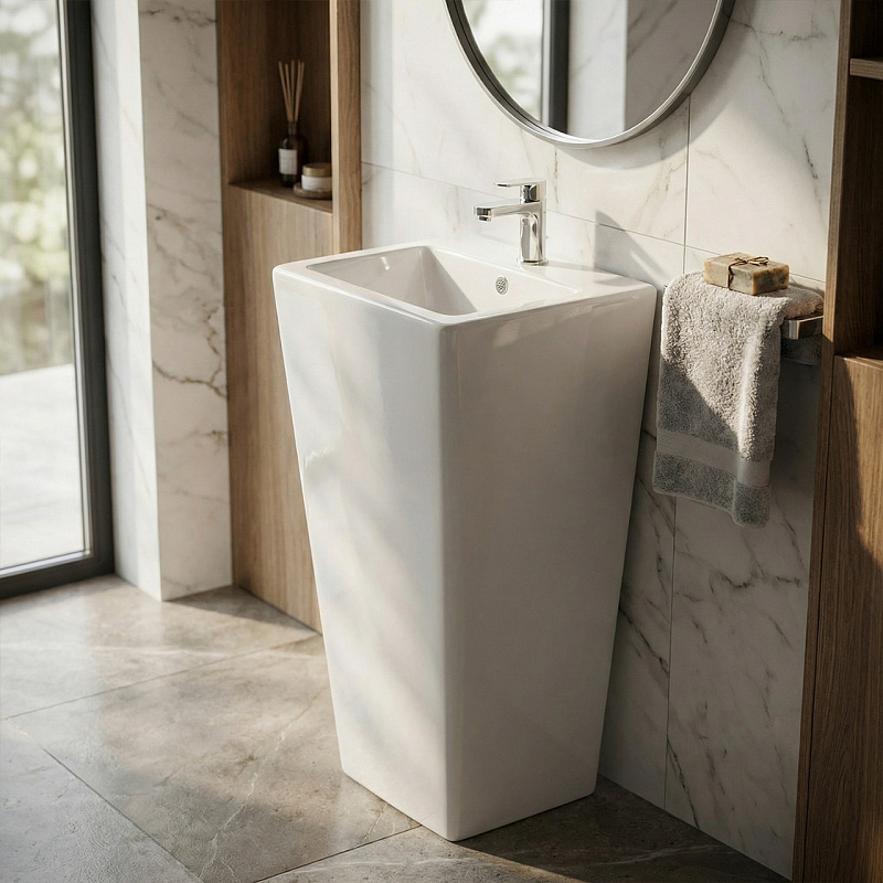 Раковина напольная AZARIO Фретта Скваер 440х380х835 отдельностоящая, прямоугольная, белый глянцевый (AZ-303)