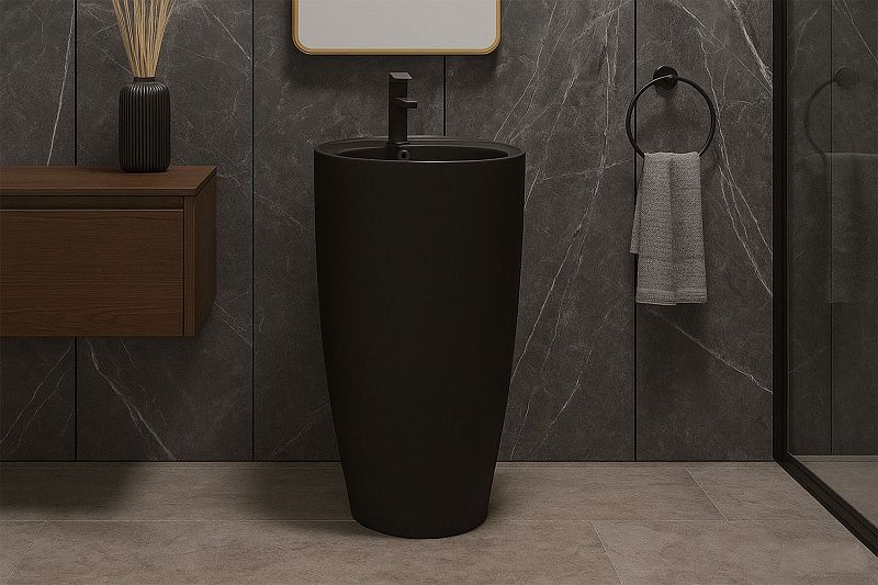 Раковина напольная Azario Dea 500х500х860: Изысканность и Функциональность в Черном Санфаянсе
