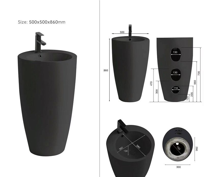 Раковина напольная Azario Деа 500х500х860 отдельностоящая круглая, черный (AZ-203MB)