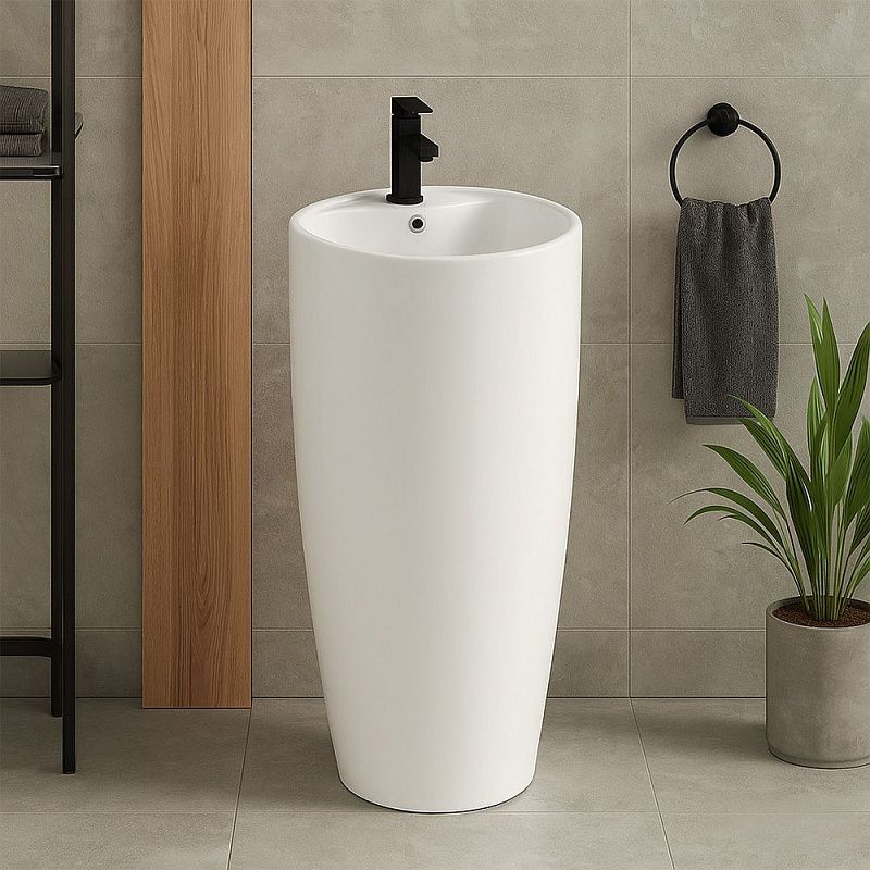 Напольная установка делает эту раковину акцентным элементом ванной комнаты, создавая ощущение простора и роскоши. Она не требует крепления к стене, что упрощает монтаж и открывает новые возможности для планировки.