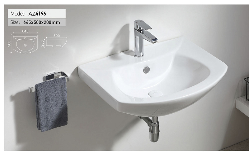 —Раковина Azario 64,5х50х20, подвесная, белая (AZ-4196)