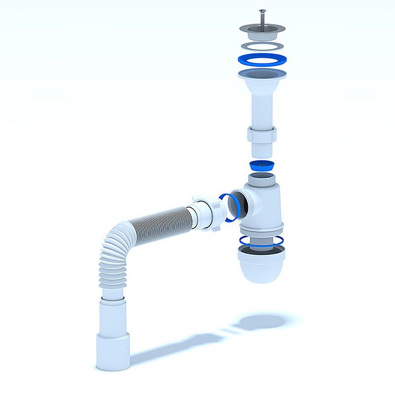 Комплектация: сифон с выпуском, гибкая труба для подключения к канализации 40*40/50мм, упаковка