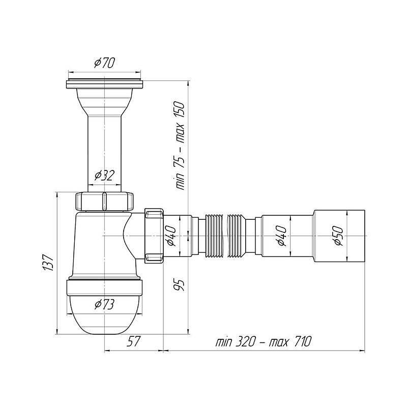• Высота гидрозатвора: 60 мм