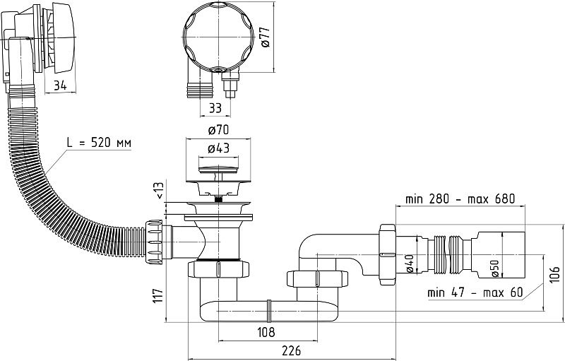 Слив-перелив Ани Пласт для ванны, полуавтомат, хром (EM601)